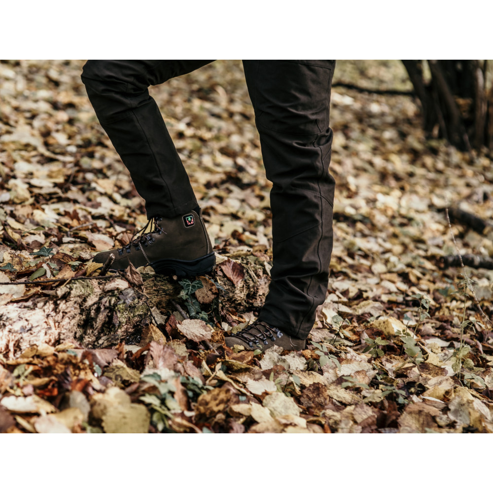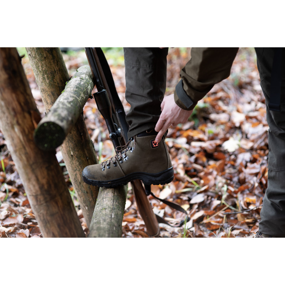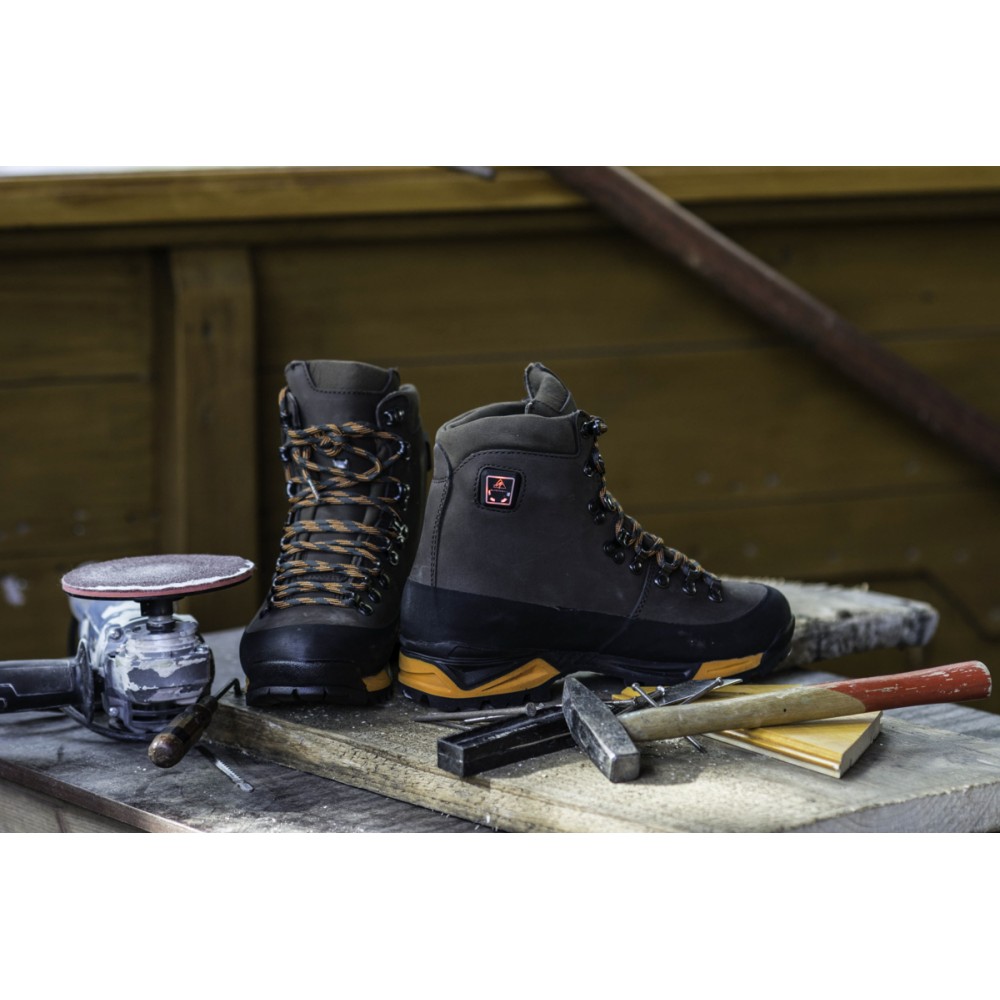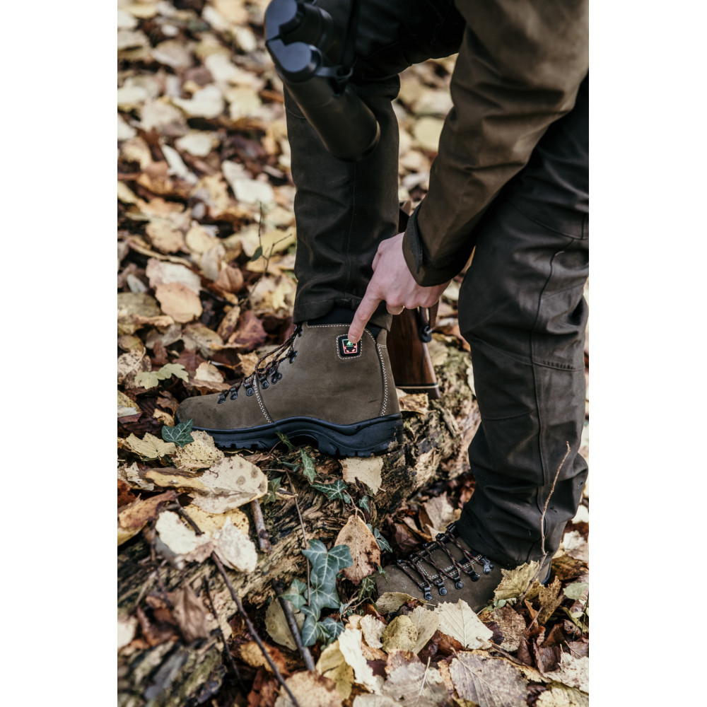 Vŭnshniyat material e visokokachestvena, vodootblŭskvashta kozha nabuk v kafyavo-zelen tsvyat, s khastar ot estestvena kozha, taka che botushite sa udobni za nosene pri vsyakakvi deĭnosti na otkrito v studeno ili vlazhno vreme. Mnogosloĭnata podmetka predlaga idealen komfort, s Vibram® vŭnshna podmetka, kozhena dvoĭna gŭvkava stelka i gŭvkava poliuretanova podmetka s udaropoglŭshtasht efekt v oblastta na petata.