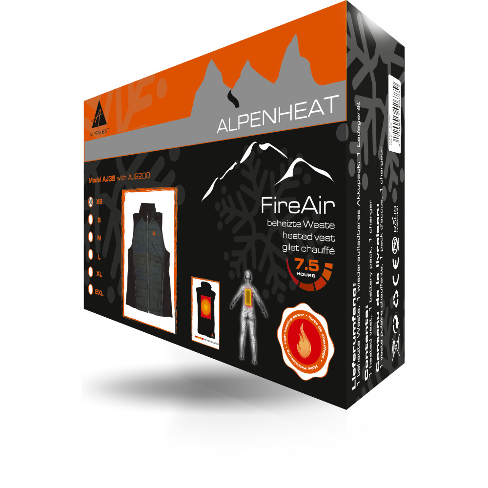 Alpenheat vyhřívaná vesta má 5 teplotních úrovní se speciálním vytápěcím systémem vyrobeným z biotermálních vláken, které jsou obsaženy na zadní straně oblečení. Nošení bundy je velmi pohodlné díky tomu, že syntetické topné části jsou díky flexibilním biotermálním vláknům téměř nenahmatatelné. Vyhřívaná vesta je vyrobena z odolného materiálu, takže může být prána bez jakýchkoliv problémů v pračce až do teploty 30°C.