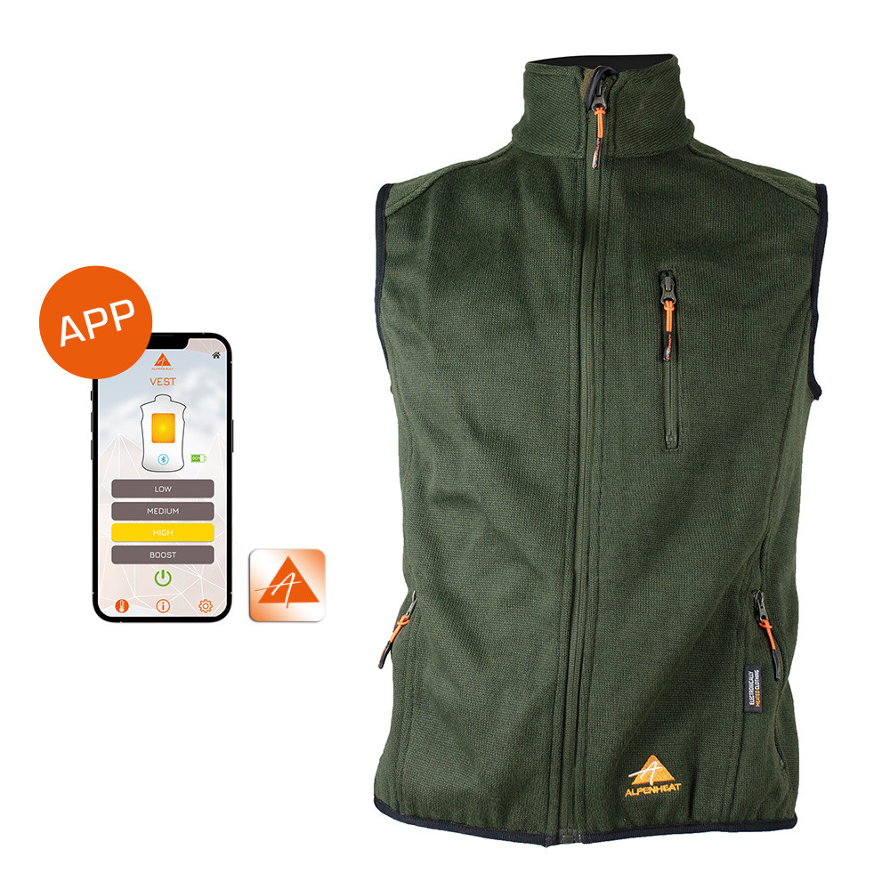 The ALPENEHAT Fire-Performance is the perfect garment for anyone who likes to spend time outdoors in the cold months. The FIRE-PERFORMANCE heated waistcoat impresses with its ingenious functional details and a special heating cell system made of thermal fibres, which is integrated in the back area. With 4 different heat settings giving 2 to 8.5 hours of blissful warmth before having to recharge the battery. The heat setting can be regulated via the Alpenheat APP on your mobile device or by pressing the push button on the battery pack