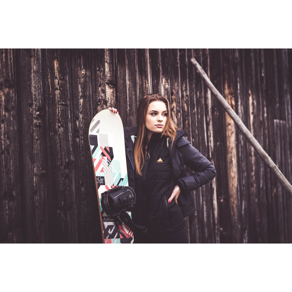 The specially developed thermal fabric heat cell system is embedded in the back area of the vest. FIRE-AIR is operated by a rechargeable battery, kept in the outside pocket. An additional feature is the battery level indicator, so you always know how much power you have. With 5 heat settings a simple touch of the button on the battery pack regulates the desired temperature, giving 2.5 to 7.5 hours of blissful warmth.
