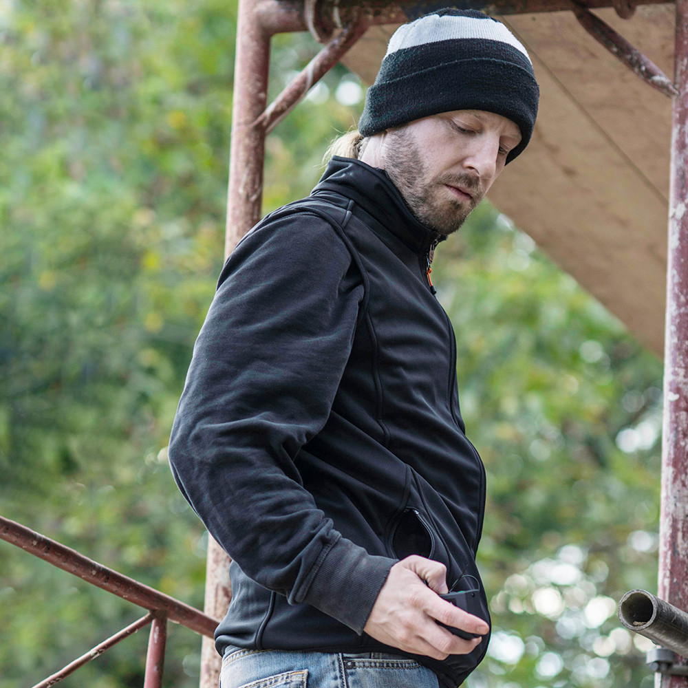 Zhilet s podogrevom izgotovlen iz trekhsloynogo dyshashchego materiala softshell, vetronepronitsayemogo i vodonepronitsayemogo, yego mozhno stirat' v mashine pri temperature do 30°C. On obespechivayet vysokiy uroven' komforta, sokhranyayet telo sukhim i teplym i mozhet ispol'zovat'sya kruglyy god. Sistema obogreva yedva zametna i chrezvychayno legka, a akkumulyator legko snimayetsya.