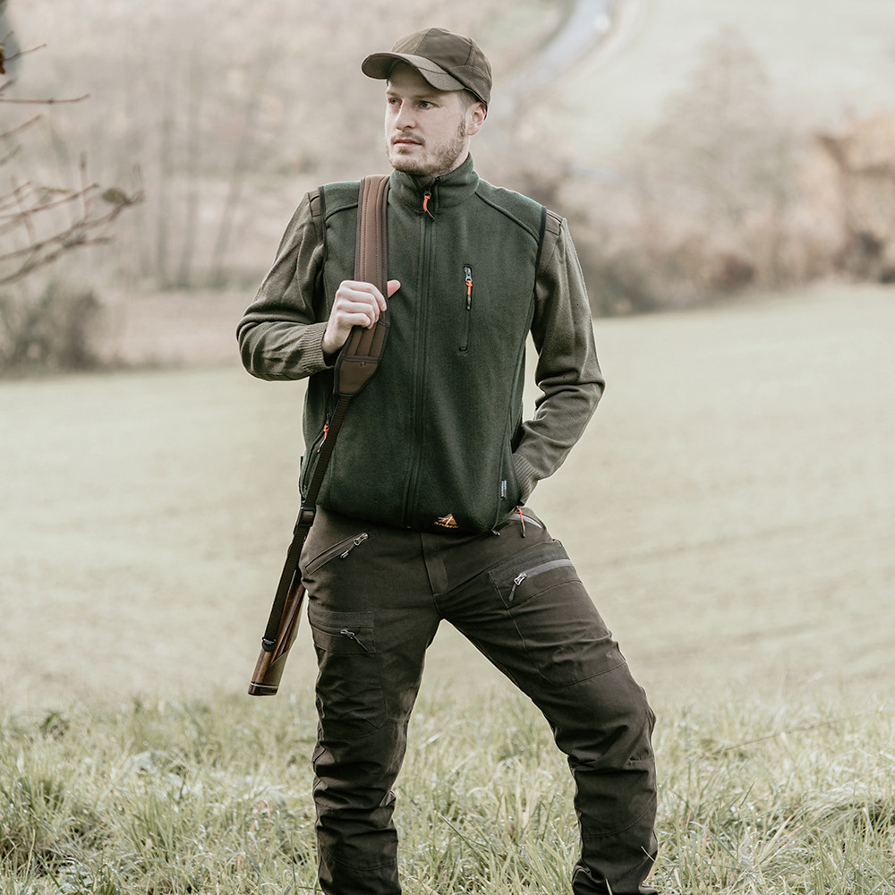 Den värmande västen är tillverkad av stickad fleece, vilket gör den idealisk som ett varmt underställ och ger optimal rörelsefrihet för mångsidig användning. Den ger ett bekvämt skydd i kalla till isiga temperaturer.